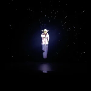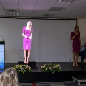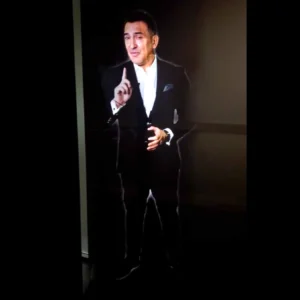 Trac de scena sau la prezentari? Invitati speciali sau vedete care nu pot participa fizic la eveniment? Avataruri Metaverse care prezinta brandul? Putem plasa pe scena, in cadrul evenimentelor, conferintelor si prezentarilor orice persoana, personaj, brand ambasador, asistent virtual sau avatar in format holografic 3D. Holograma Human Size este o solutie inovatoare care aduce realismul la un alt nivel. Compusa din 3-4 holograme fixe, acest sistem creeaza o imagine tridimensionala cu inaltimea de 1,7 metri, perfecta pentru a proiecta o silueta umana realista. Holograma human size transmite atat video, cat si sunet.